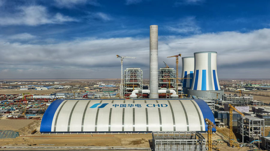 这是1月21日拍摄的青海华电格尔木一期2×660MW超超临界燃煤发电项目施工现场(无人机照片)。新华社发