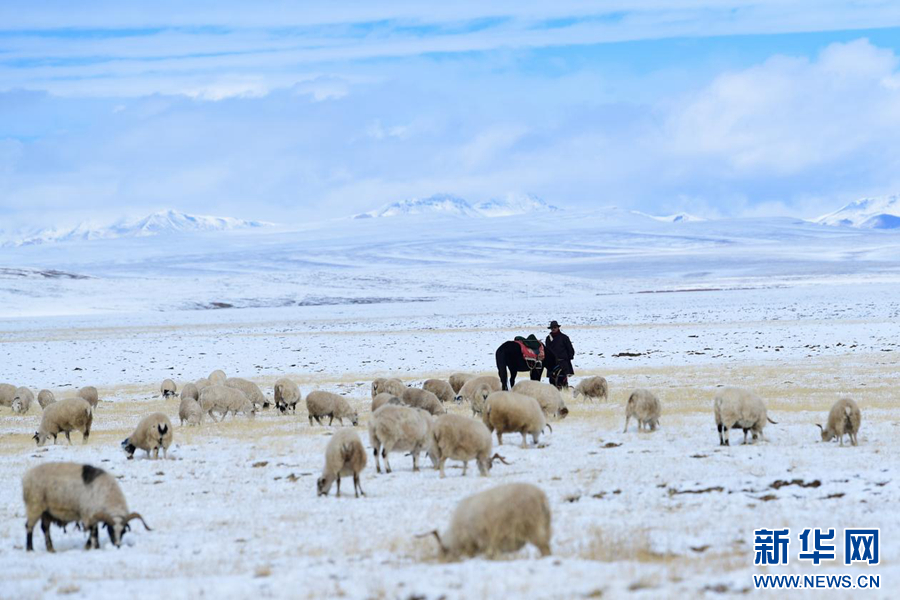 2021年10月20日,在青海省果洛藏族自治州玛多县,牧民在放牧。新华社记者 张龙 摄